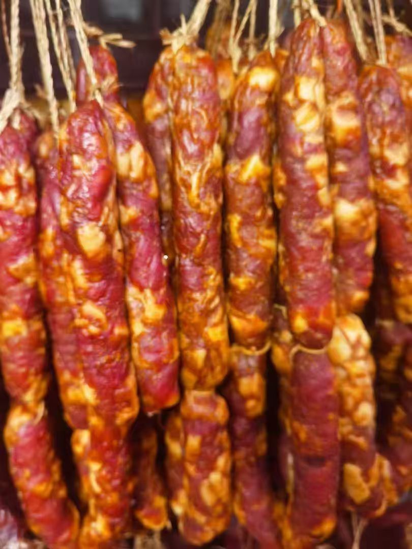 其中在豬肉的選擇上面,大家可以選用前腿肉,肥瘦比例在3:7左右是最棒的,這樣制作出來的香腸在口感上更飽滿。那在在青花椒的選擇上面,大家可以選用四川的青花椒,想要做出正宗的麻辣香腸,我們就需要在選材選料上面講究。最后大家可能最困擾的是灌香腸的過程,大家不要覺得這件事很難,其實很簡單,把肉都放進去,就好了,但是需要在過程中盡量把空氣排擠出來,那里面空氣多,也沒關(guān)系,不要慌,我們拿出針或者牙簽或者尖細的工具扎一下,讓空氣出來,就可以了,香腸里面的空氣不排出來,會讓香腸發(fā)霉,肉質(zhì)邊差,然后影響存儲時間。